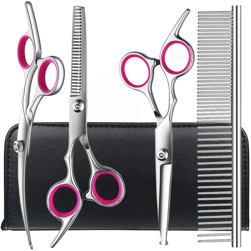Güvenlik Yuvarlak Uçları ile Köpek Bakım Makas Seti, Paslanmaz Çelik Profesyonel Köpek Bakım Makas Seti - Köpek Kedi Evcil Hayvan için Uzun Kısa Saç için İnce, Düz, Eğri Makas ve Tarak