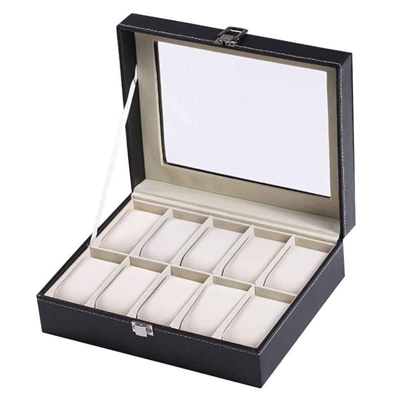 kosingna Saat Saklama Kutusu 10 Yuvalı Vitrin Gerçek Cam Düzenleyici Çerçeveli Cam Kapaklı Zarif Kontrast ve Çıkarılabilir Yastık Pu Erkekler ve Kadınlar için